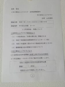 中川青松シニアクラブ定例会開催のお知らせ
